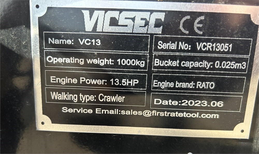 2023 Vicsec VC13 Mini Excavator - Brand New